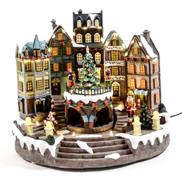 con musica luci e movimento 31x20x H27,5 cm. Funziona a batteria e corrente. Batterie non incluse.